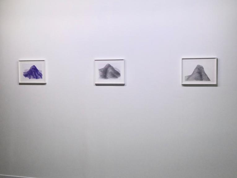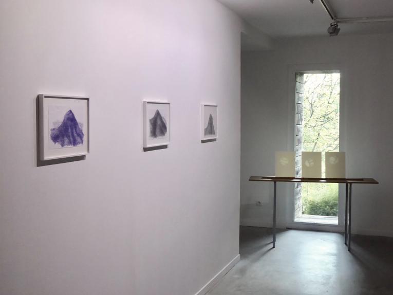 Ma lo stesso video, girato qualche mese prima della mostra, è strettamente legato al luogo, o quanto meno alla regione, trovandosi il Lac des eaux chaudes (dove il video è stato girato, nei mesi scorsi) a qualche chilometro dalla sede del Cairn. In questo caso si tratta di un tempo passato, rispetto al presente inquadrato dalla finestra che accende durante il giorno gli Oracoli e a quello che spiamo, dall’interno dello spazio, osservando il centro del tavolo di I non illusi errano, ma una certa idea di unità aristotelica di luogo tempo e azione non viene comunque contraddetta. Infine le tre Montagne impossibili, tutto un altro tempo, e un altro spazio, quelli liberi, sfuggenti, incontrollabili, del sognare, attività che non conosce limiti e non accetta regole di sorta, ed è un sogno in particolare che Alessandro ci rivela, ci racconta, tre volte di fila. Non lo fa con le parole ma servendosi di un segno continuo, quello dello scarabocchio, o ghirigoro, che utilizza, con matita o penna biro, per rappresentare le immagini apparsagli, appunto, in sogno, di una montagna che si trova neppure troppo lontano da Digne (a circa 80 km in linea d’aria, sul versante italiano di queste montagne) in un luogo a lui molto caro, legato alla sua infanzia e agli affetti familiari più intimi e profondi.