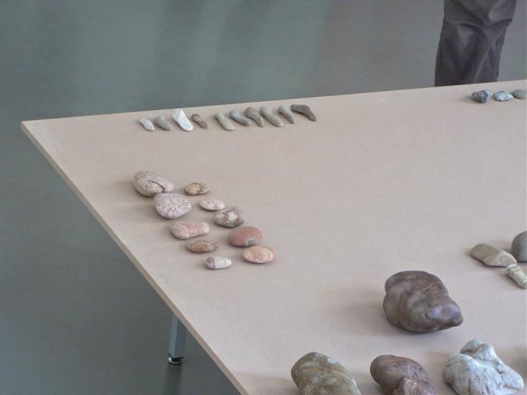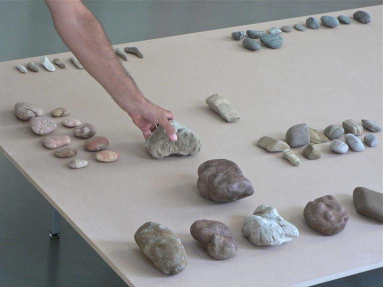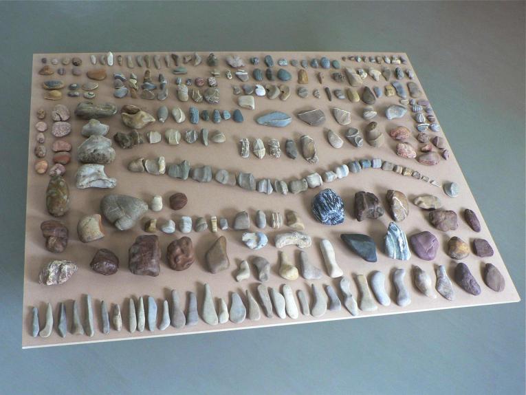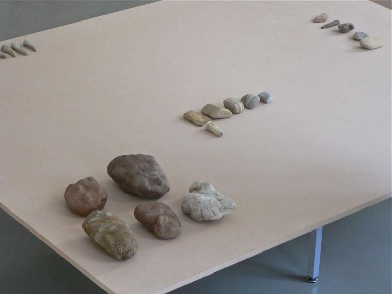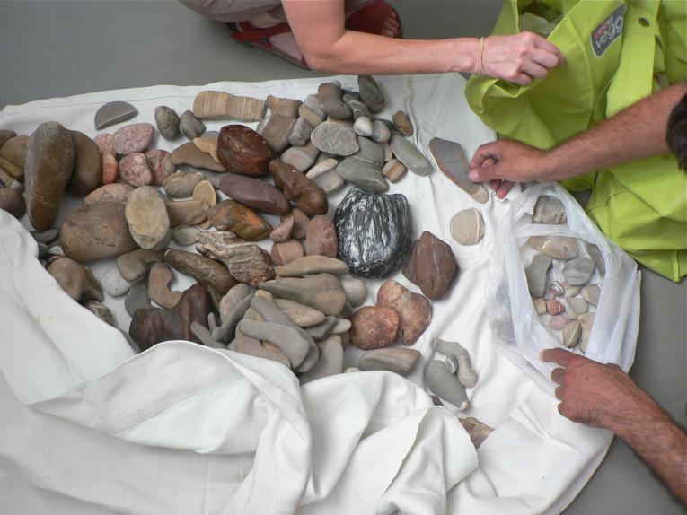 Andrea Caretto e Raffaella Spagna, fra il dicembre 2014 e il gennaio 2015, hanno spesso percorso le rive del Danubio nel Wachau, durante la loro residenza di tre mesi a Krems, in Austria, raccogliendo centinaia di pietre modellate nel tempo dal fiume, che le aveva spostate da un luogo all'altro, lentamente ma senza sosta, sempre modificando la loro forma, disperdendole in quell'ambiente caotico. La raccolta di Caretto e Spagna – che hanno scelto ogni pietra distinguendola da mille altre presenti in ognuno dei siti esplorati – ha determinato un passaggio da quel caos a un sistema ordinato, anzi a una serie di sistemi, perché le pietre potrebbero appartenere a più di una classe, a seconda che si consideri la loro forma, il colore o la grandezza, eccetera. Ed è importante rimarcare il fatto che, come il caos a cui precedentemente appartenevano le pietre del Wachau aveva tutte le caratteristiche della provvisorietà e dell'impermanenza, anche questa nuova ordinazione, o queste nuove ordinazioni operate da i due artisti non sono definitive, non venendo le pietre costrette a permanere indefinitamente in una collocazione stabile e rigidamente definita. Di volta in volta, esse possono essere sistemate – ma non fissate – su un supporto di varia forma e dimensione, creando sempre nuove costellazioni secondo criteri sempre variabili, perché non rigidamente codificati.