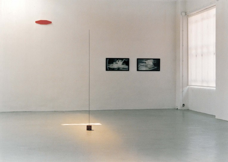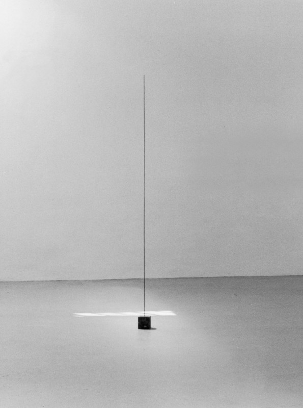 Momento cruciale della mostra è un’opera fondamentale (del 1966) di Giovanni Anselmo. Questo lavoro, ‘senza titolo’ (ma l’autore ne parla talvolta come di un “autoritratto”) per la sua intatta freschezza e per lo straordinario equilibrio fra semplicità formale e tensione interiore, come molti altri di quel periodo (Pietra alleggerita, Struttura che mangia l’insalata, Torsione) ci fa capire oggi con chiarezza che l’arte, non soltanto italiana, degli ultimi trent’anni non sarebbe stata la stessa senza la presenza sempre lucida e incisiva quanto discreta di questo autentico innovatore.
