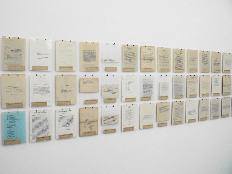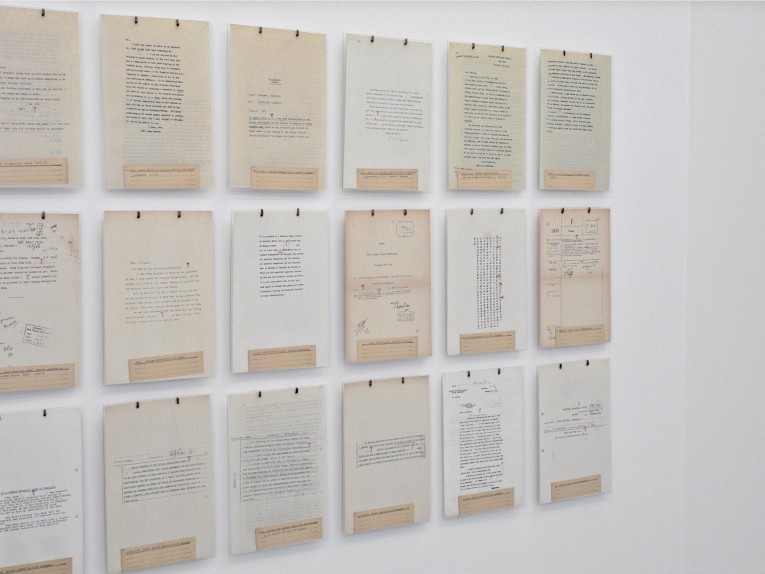 Nell’installazione The T Documents, la selezione, personalmente curata dall'artista, di 81 documenti d'archivio originali è stata digitalizzata e quindi in qualche modo contraffatta stampando i fogli sul retro di pagine d'archivio della Germania Est. I documenti sono disposti, in ordine cronologico, all'interno di buste trasparenti appese a ganci di metallo fissati sul muro.