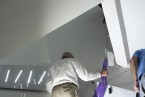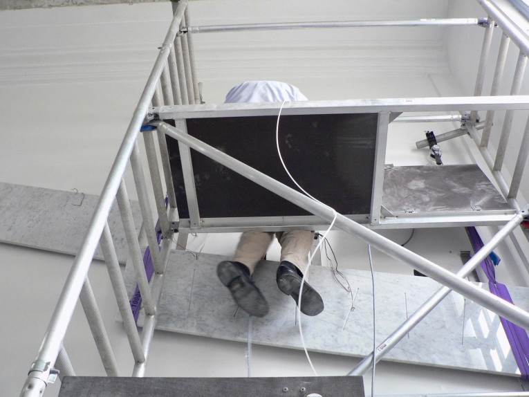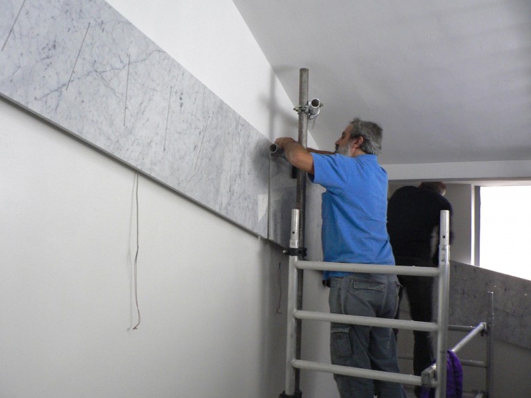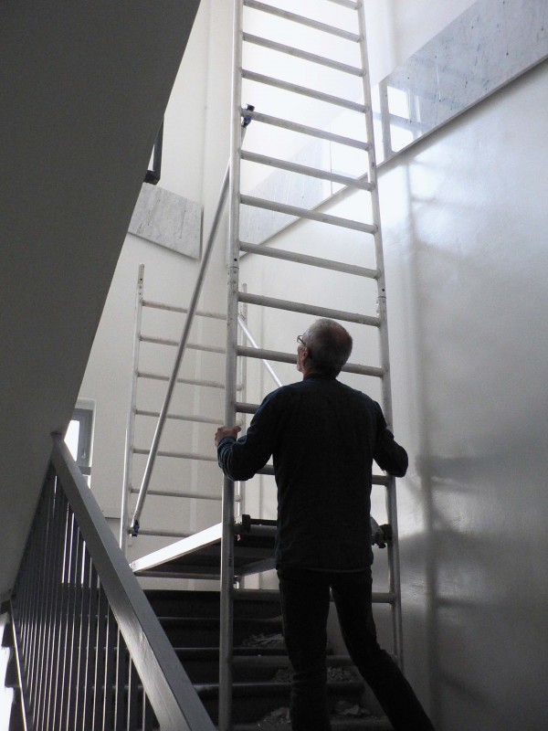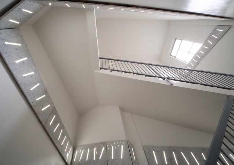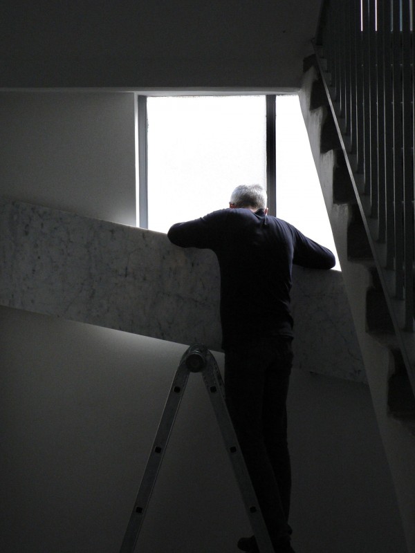 Nel novembre 2006, l’artista tedesco Hans Peter Kuhn (autore di due mostre personali con e/static, nel 2005 e nel 2008, oltre a una grande installazione ‘light and sound’ Advertising, presentata nella sezione “Constellations” di Artissima nel 2005) su commissione di un collezionista torinese realizzò un importante – e pressoché unico nel suo genere, almeno in Italia – progetto di installazione permanente con luci e suoni, Helix, che venne inaugurato in occasione della stessa inaugurazione di un edificio appena ristrutturato in via Reggio 27 a Torino. Opera assai impegnativa, che richiese un lungo lavoro progettuale, quindi esecutivo e di allestimento, collocata com’è nel vano scale dell’edificio, fu presentata ancora priva della parte sonora, che faceva parte del progetto originario ma la cui esecuzione venne rimandata. Ora, esattamente 12 anni dopo la prima inaugurazione, grazie alla volontà del proprietario e all’entusiastica disponibilità dell’artista, la sera di venerdì 2 novembre verrà presentata al pubblico l’opera finalmente completata, quindi da quella sera “Helix will talk!”, ovvero emetterà la sua voce, con una composizione di suoni creata appositamente dall’artista. L’opera è stata anche sottoposta a una revisione di tutta la componente luministica, per cui, da quella sera, apparirà agli astanti in una forma rinnovata, pur rimanendo inalterato il fregio/supporto in marmo che percorre, con il suo sviluppo ellittico, tutta la scala interagendo visivamente con luci e suoni.