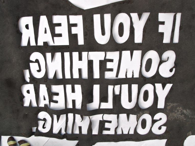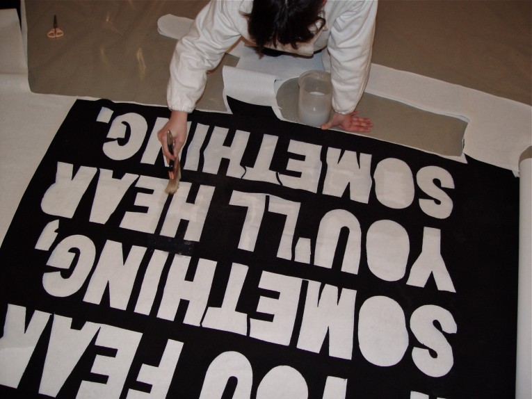 A lato della personale, nello spazio ‘storico’ di via Parma 31, dal 17 maggio sarà possibile vedere gli esiti dell'accurato lavoro di restauro di un'opera del 2004, If you fear something, you’ll hear something, realizzato da Roberta Accordino. Per la prima volta da allora, quest'opera molto importante, danneggiata dall'essere stata esposta all'aperto, verrà proposta al pubblico nella sua ritrovata integrità e freschezza.