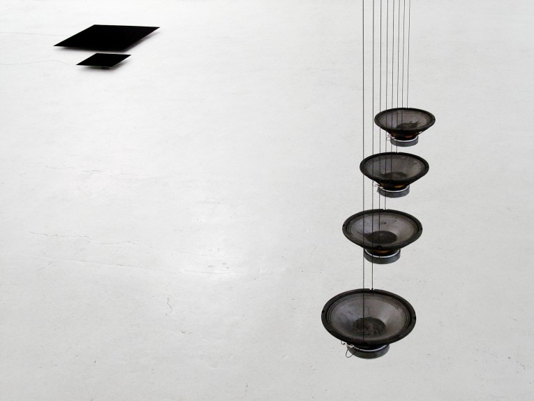 Julius integra a questi altoparlanti anche altri materiali grezzi, come sassi o acqua, e diversi elementi, quali lastre di vetro o di metallo, vasi in terracotta, ciotole, tazze giapponesi oppure ‘wok' che fanno da diffusori sonori, risonando. E' attraverso questi elementi, supporto alla musica diffusa dagli altoparlanti, che il suono pensato diviene concreto. Essi agiscono così come rivelatori del suono, trappole per il suono stesso e per l'occhio. Infatti, attirando l’occhio dello spettatore, è come se gli permettessero di udire, grazie a quest'organo, ciò che altrimenti rischierebbe di essere percepito come un disturbo, un rumore di fondo, e non solo a causa del basso volume, ma anche per una certa pretesa supremazia percettiva dell'occhio. Avvicinandosi alle opere, l'ascoltatore-spettatore può distinguere e intendere la musica diffusa dagli altoparlanti, farne esperienza. Per Julius, questa esperienza dell’ascolto ha una concretezza che si oppone all'astrattezza della scrittura musicale, così come concreto è il suono, cosa fisica, palpabile, e come tale vissuta.