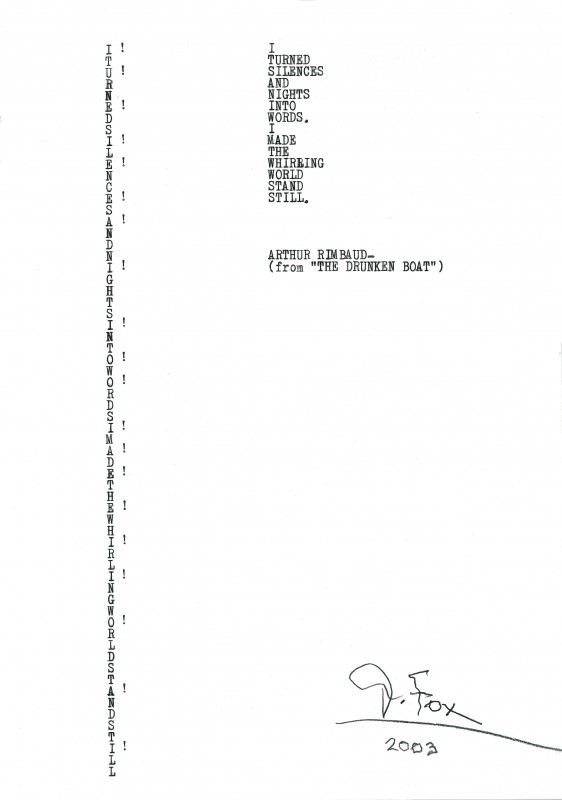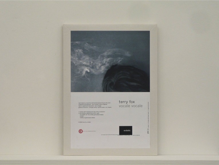 Edizione limitata di 70 copie numerate, 11 delle quali (da 1 a 11) sono state firmate dall'artista. Ogni busta in cartoncino (formato cm 25 x 34,8) contiene: 11 copie fotostatiche in formato A4, scala 1:1, dei testi elaborati da Terry Fox - lavorando con la sua macchina per scrivere - durante la fase di progettazione della mostra omonima; due stampe digitali con vedute della mostra, allestita nello spazio espositivo di e/static nell'autunno del 2002.