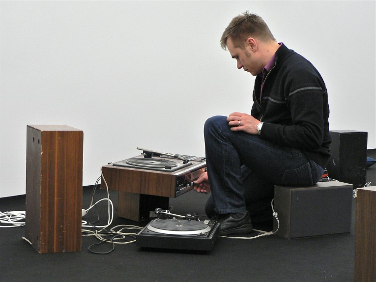 "Simple Methods for Complex Times” (metodi semplici per tempi complessi) è il titolo del progetto di ‘sound performance’ che MICHAEL GRAEVE va proponendo già da qualche tempo sulla scena internazionale. Nel corso della performance, egli aiuta la sua orchestra di giradischi e altoparlanti ‘domestici’ a funzionare: ricche tessiture, ritmi e toni che sono l’effetto di semplici interazioni fra processi meccanici e gesti umani. Ma le macchine non sono DJ ‘gira-piatti’, e non si vedono vinili. Siamo piuttosto invitati ad assistere a una complessa esperienza sonora che promana da dieci giradischi e altrettanti amplificatori, più venti altoparlanti sparsi attraverso la sala. “Sono affascinato dalle intrinseche limitazioni delle macchine, e dal modo in cui queste limitazioni danno origine a complesse possibilità e ad eventi sonori. In queste performances (del tutto improvvisate) io mi diletto nel mettere alla prova la natura imprevedibile e volatile dell’attrezzatura”.
