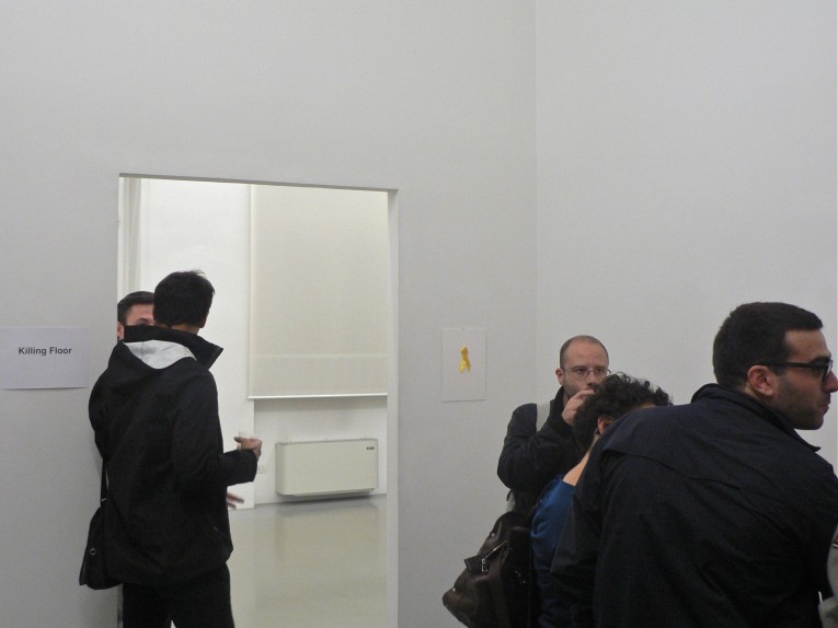 This year, from 29th April to 26th June, all through Killing Floor II, a webcam set up inside blank took snapshots every day of everything that took place between 6 pm and 9.30 pm at certain intervals (the frequency varied, depending on the period, and went from a minimum of one every three minutes to a maximum of one a minute): it functioned independently, and was subject to no one’s will, and was generally overlooked or ignored, with the exception of yours truly and Alessandro Quaranta. For some time now, surveillance cameras have been a part of our everyday life, they can be seen basically anywhere, and nobody gives them a second glance. Only occasionally do they come to the forefront, in connection with an extraordinary event, usually of a criminal nature. In these cases, the footage is carefully studied and analysed, in search of proof or new evidence, of something that might give a fresh perspective, and often leads to the solution of difficult cases that would have otherwise remained unsolved.