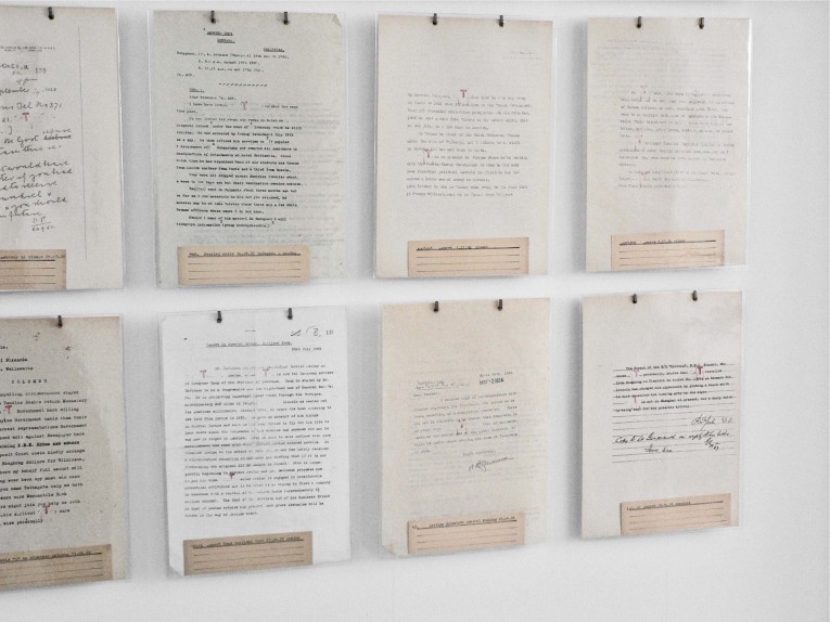 The T Documents contains 81 chronological archive documents and is one of a number of related works and projects in differing media derived from over 4000 intelligence documents from State Archives in Europe and North America from the inter-war period which have been collected by the artist. These documents reveal the life of “T” (b. 1879 Paks, Hungary - d. 1943 Shanghai, China), a forgotten Central European historical figure whose multiple identities span three continents (Europe, North America and Asia) and touch on many of the most important events of the pre-war period. The collection contains daily reports and correspondances between 1915 and 1943, forming a vast communication network in which the official traces and observations of one individual are cross-referenced to historical events, international personalities and geographic locations.