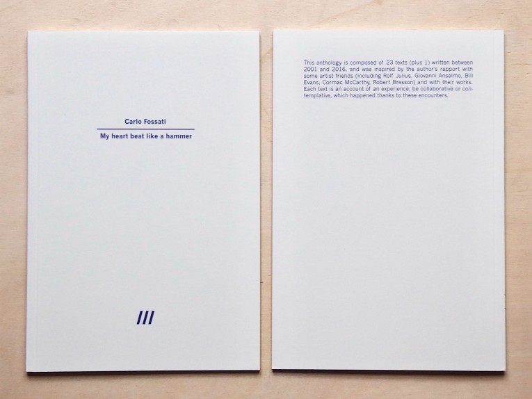 The English edition of “My heart beat like a hammer” [the title is after a song by Jeremy Spencer, published in the “Fleetwood Mac” album, 1967] has been published in a limited edition of 80 copies in September 2019. This book has 60 pages (with a b/w picture) in the format 13 x 19 cm. Translations by Laura Culver, Valentina Maffucci, Cristina Travaglini.