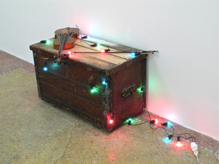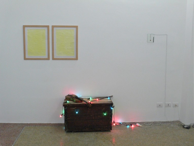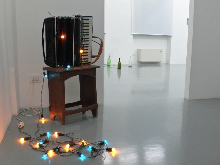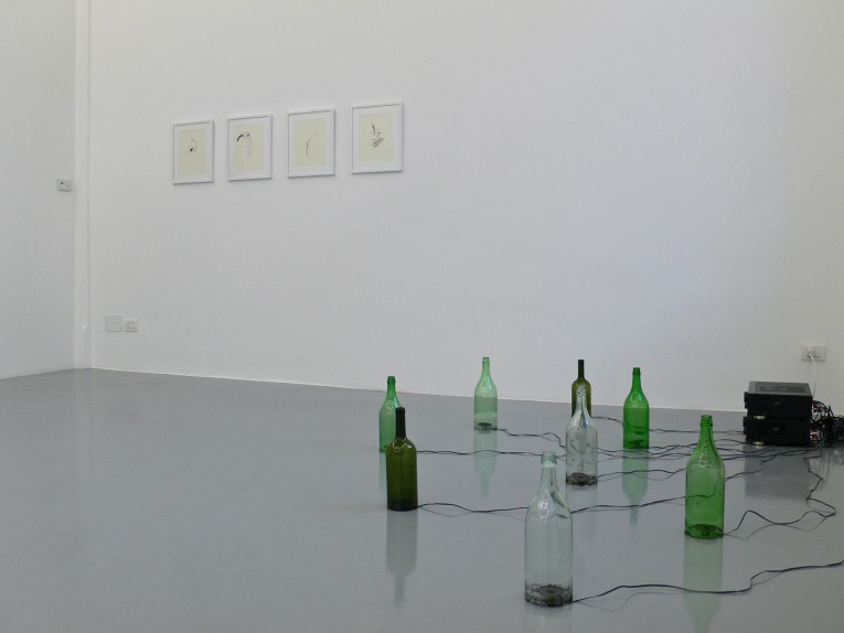 By Steve Roden the exhibition features Moon Gatherers, a work from 2002 which was part of Roden's first solo show for e/static and which appeared again in the remarkable 2005 group exhibition “Light Sculpture / Scultura leggera”, curated by Simone Menegoi in Vicenza at spazio 503 Mulino.