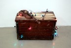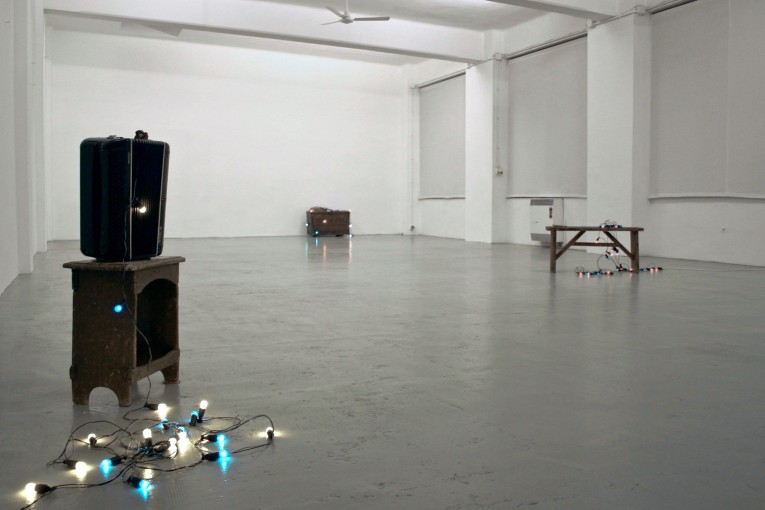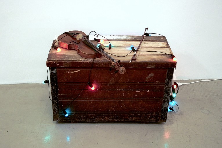 The last of the Muses not yet mentioned, Melpomene, from whom the final work of the series derives its name, is associated with a violin, an instrument typical of the Rom people (who will be represented here by red, green and blue lights), resting on an old and battered travelling trunk. Both the instrument and the object capture perfectly the nature of a people who are themselves so congenial to projects such as those of Luca Vitone in so far as one associates with both the idea of travel, an openness towards the other and the new, and a curiosity about the distant and unknown.
