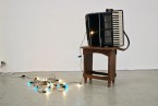 Hence the accordion, which had been played in the concluding part of that initial performance (and which ushered in the banquet that then followed) by the musician Beppe Turletti, would remain linked both to the lights which represent Turin in her emblematic colours (blue and yellow), and to the stool which served as a rest for the performer's foot, or for the instrument itself in those moments when a drink or conversation takes the place of the music.
