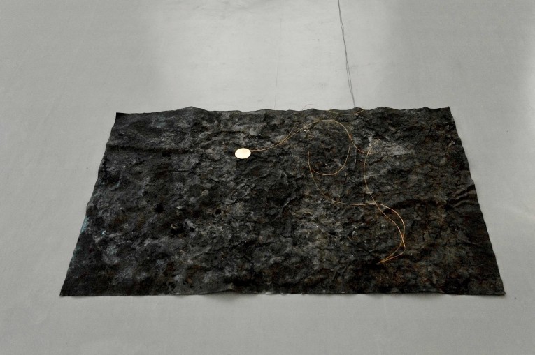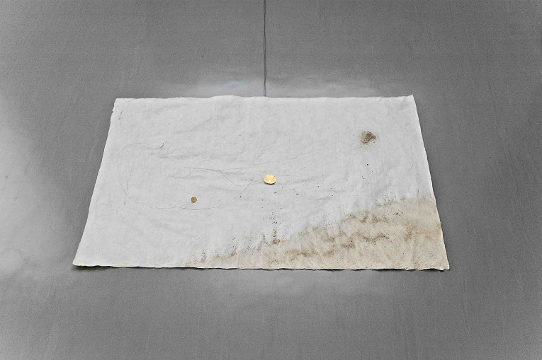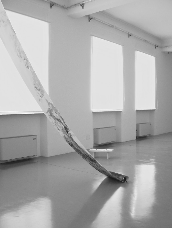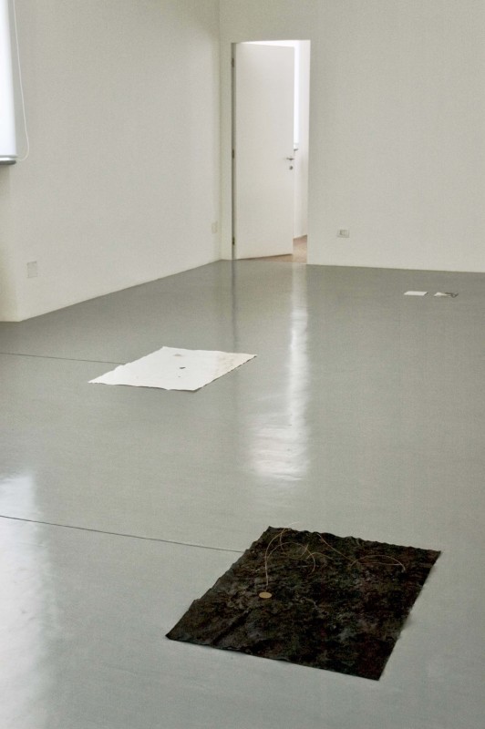 Her installations, invariably arranged on a horizontal plane, frequently on the floor itself (under your feet), are fragile, delicate things, like thoughts, memories or dreams as they take labile shape in the mind. Like two valves that in closing form a shell, Miki Yui's shows often take place in two complementary parts, sometimes in different spaces (atem and innerest at the Singhur in Berlin, in 2006) other times in the same space (still life - under your feet at the Kunstverein, Lippstadt, the same year): contrasting elements, foremost of all light and dark, open and closed, visible and invisible, dilation and contraction (in the 2003 drawing composition 1, exhibited as part of “traccia / trace”, Yui’s first show for e/static held in 2004).