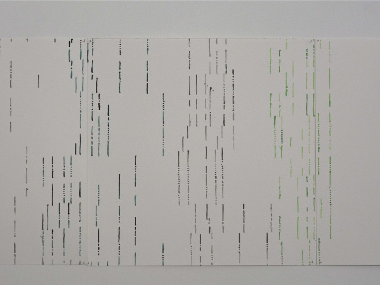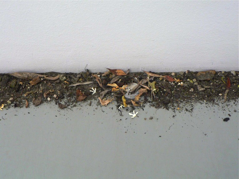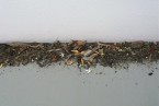 The title of this exhibition is both a literal reference to different works, old and new, and to ‘past’ ones, which are revisited in a variety of ways: as is indeed the case of a song which may seem new to us, if it’s interpreted differently from its original version. Some of these pieces have already been exhibited in the space in via Parma 31 - this is the case for music for the clouds by Steve Roden (2002), on the occasion of his debut at e/static, as is the case for the video monochrome blue (projected, this time, on a wall, in 2002, on a screen) and for rain, again by the same author, but from his second exhibition, in 2004; the same goes for Rücken (1977/2007), by Rolf Julius, showcased in the section of his 2007 solo exhibition “Two spaces (walking)” which was mounted in via Parma; finally, Cone of Silence, a piece by Terry Fox, was exhibited for the first time in 2003, in the “Before and after sound” group exhibition. Other works had already been set up at blank, though not in the same areas of the space; this is the case for sons du haut, sons du bas by Patrice Carré, from his second solo exhibition at e/static in 2012, “Sons en formation”, and for Squares Squared by Michael Graeve, from his first solo show for e/static in 2010, “Spatial Choreography” (Graeve created this particular piece directly in the space where it was displayed for the first time). Dirt (1988/2015), a piece by Rolf Julius, is a different matter altogether and, at the same time, an emblematic case: it was presented as a part of the 2005 “Light Sculpture / Scultura leggera” group exhibition in Vicenza, and consists of three parts, two of which are permanent, while one constantly changes with every new arrangement. Two small speakers, with their own audio connector and sound reproduction device (a CD player) make up the ‘permanent’ and immutable components, along with the audio file, created by Julius in 1988; the changing material (i.e. the ‘dirt’, not as in ‘filth’ or ‘garbage’, but rather in the sense of a chaotic combination of miscellaneous items, discarded or scattered around, casually piling up) is a mixture of soil, plant residue, dust, micro-pebbles and other material, which is collected each time on the site of the arrangement or in the immediate vicinity, outside (on this occasion, on blank’s spacious terrace).