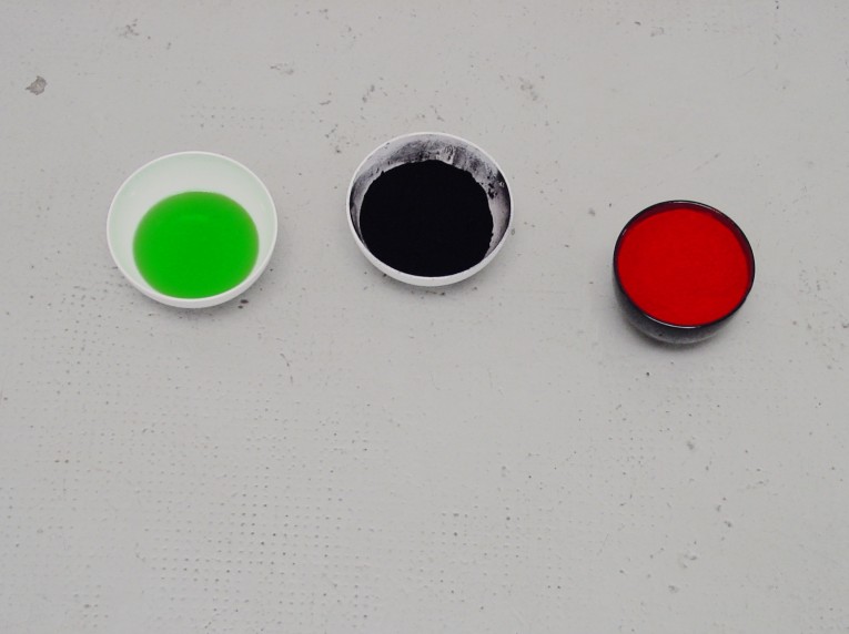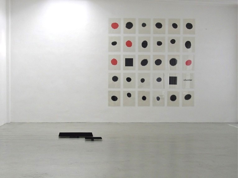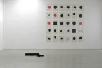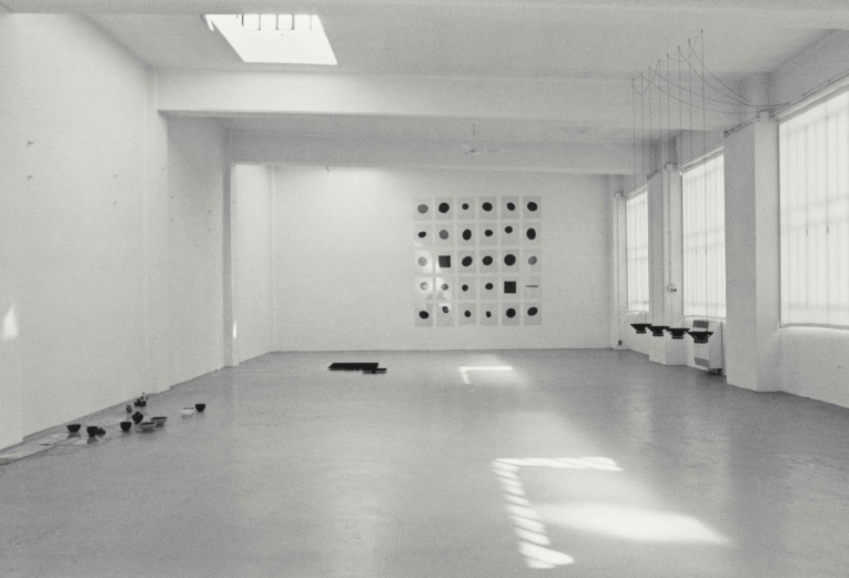 From Musik für die augen (Music for the eyes, 1981) to the most recent Large piano piece, Rolf Julius’ work, while finding expression in a wide range of ways, is clearly moving in one direction. In many of his works little CD players transmit sounds so as to buzz the membranes of variously sized loudspeakers turned to face upwards. These sounds shake the powded pigments covering the loudspeakers as if they were alive, provoking small coloured earthquakes. The loudspeaker membranes convey a physical component of sound, its very vibrations, which make its acting visible.